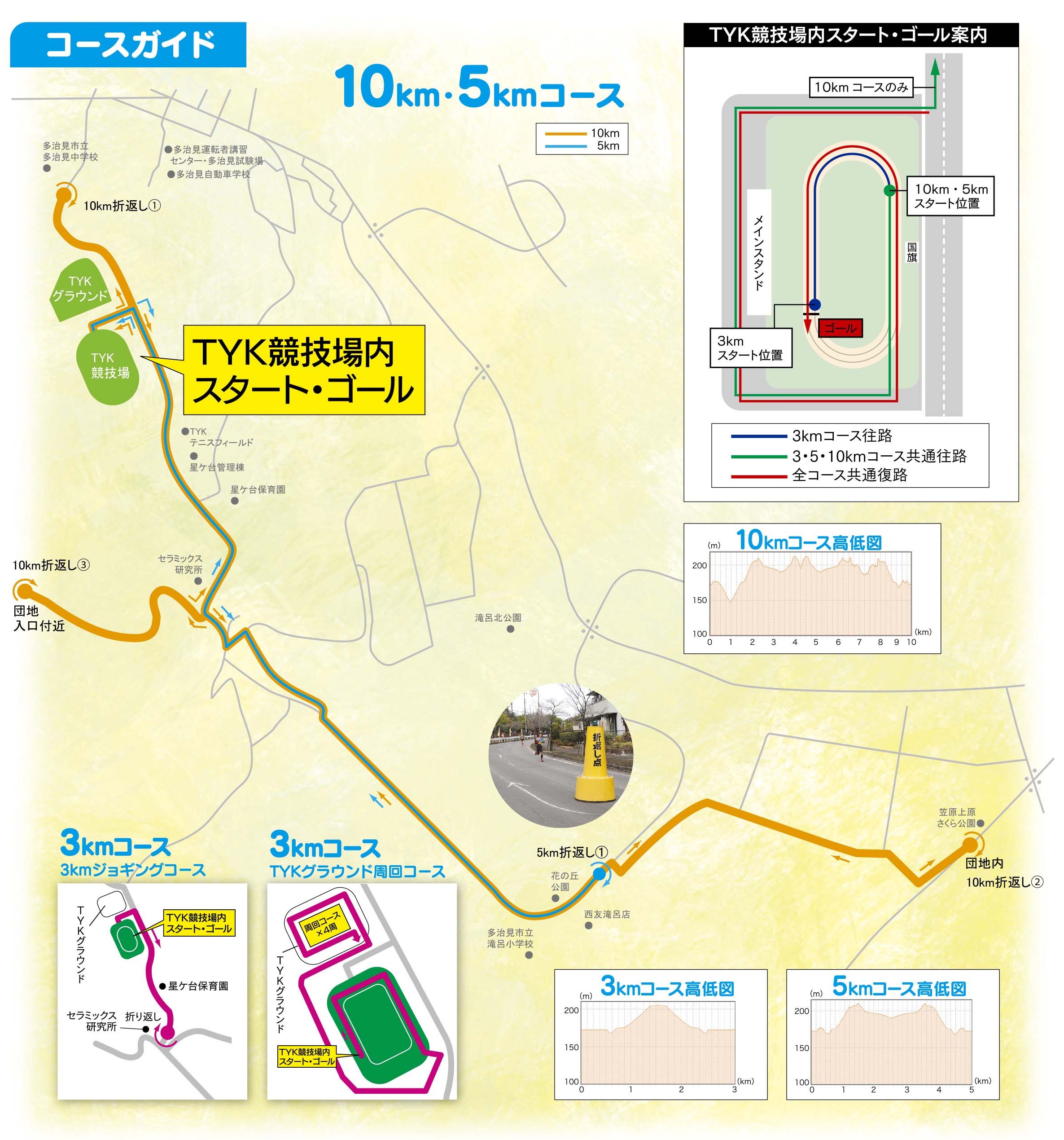 「たじみ健康マラソン」のコースは以下のとおりとなります。下見および試走をおこなう際は、以下にご注意ください。